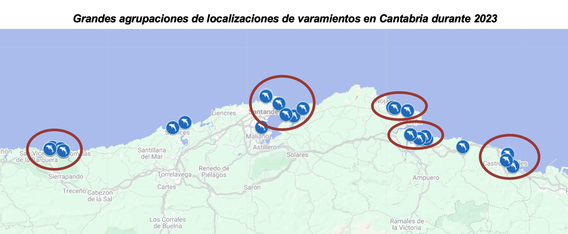 El análisis espacial de los varamientos ha permitió localizar en 2023 los principales focos de incidencia en Oyambre, San Vicente de la Barquera, Laredo y Santander, zonas que históricamente concentran un mayor número de episodios. En estas áreas se desarrollaron campañas de sensibilización dirigidas a la población local para reforzar la implicación ciudadana y mejorar el conocimiento del funcionamiento de la red REVARCA, favoreciendo una respuesta más rápida y coordinada ante futuros varamientos.