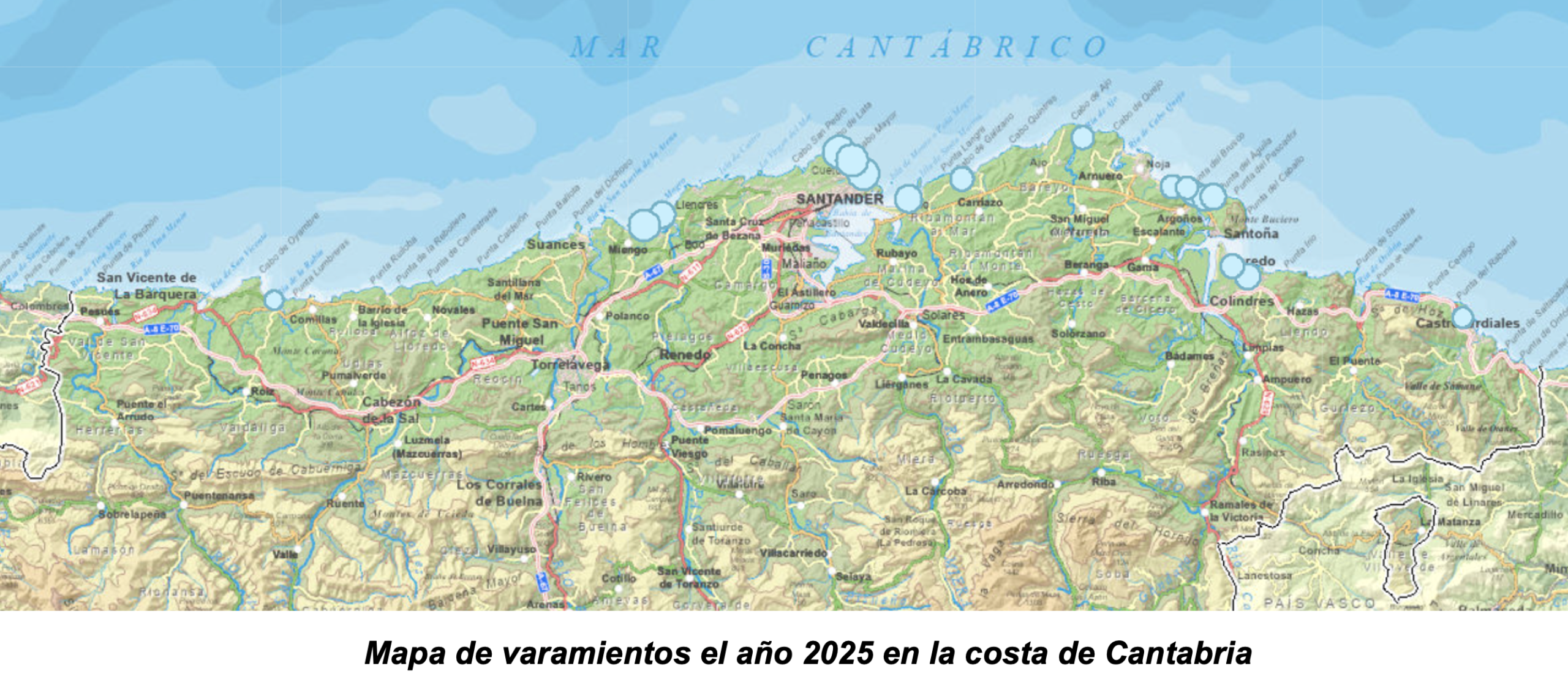 El análisis espacial de los varamientos a lo largo de la costa cántabra, ha permitido confirmar los principales focos de incidencia en Santoña, Santander, Laredo y Liencres, zonas con una elevada concentración histórica de episodios. En estas áreas se han desarrollado campañas de sensibilización dirigidas a la población local para fomentar la implicación ciudadana y reforzar el papel de la red REVARCA en la detección y comunicación temprana de varamientos.