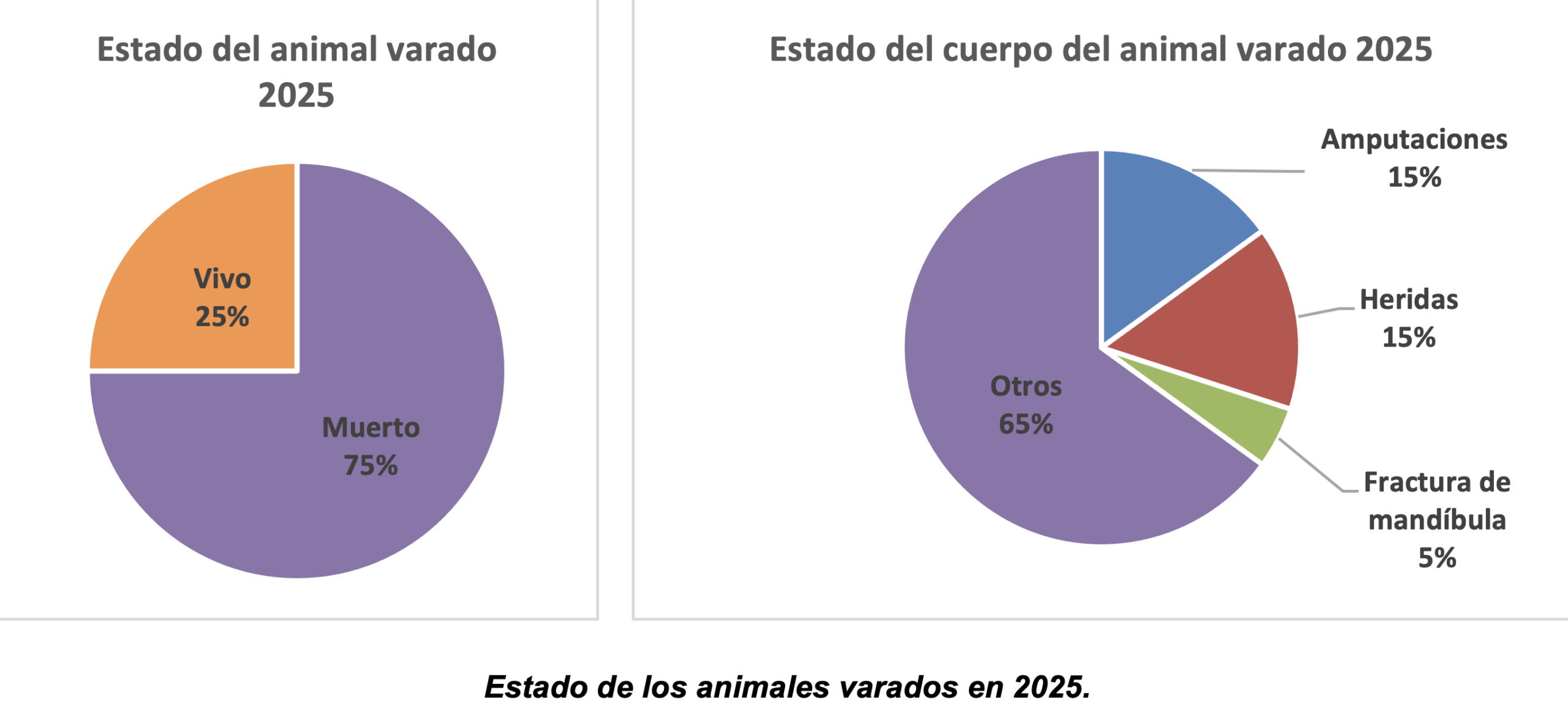 Registrar el estado de los animales varados en 2025 en el momento exacto del varamiento, resulta fundamental para su correcta gestión. Determinar su condición vital y su grado de conservación permite decidir su traslado al Centro de Recuperación de Fauna Silvestre para estudios forenses o su gestión final en el vertedero autorizado. Esta información optimiza los recursos disponibles y contribuye a mejorar el conocimiento sobre causas de muerte y factores de riesgo.